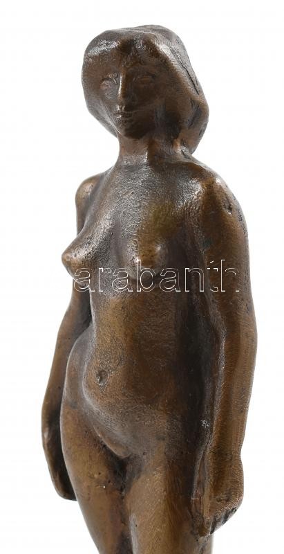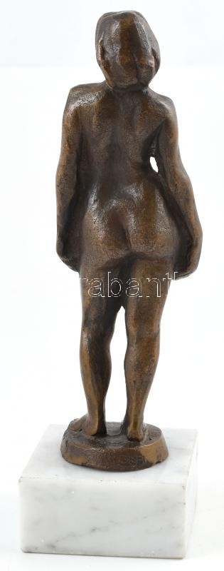 Győrfi Sándor (1951-): Női akt. Öntött, patinázott bronz, márvány talapzaton, jelzett, m: 26 cm