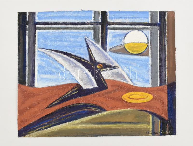 Gyulai Gaál Endre (1904-1991): Madár az ablakban. Olaj, vászon-karton, jelzett, 21×26 cm