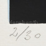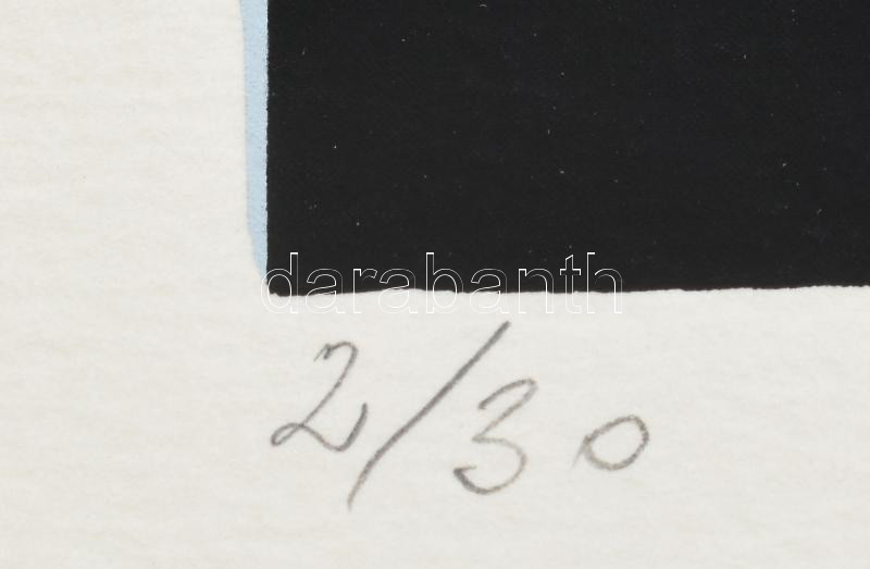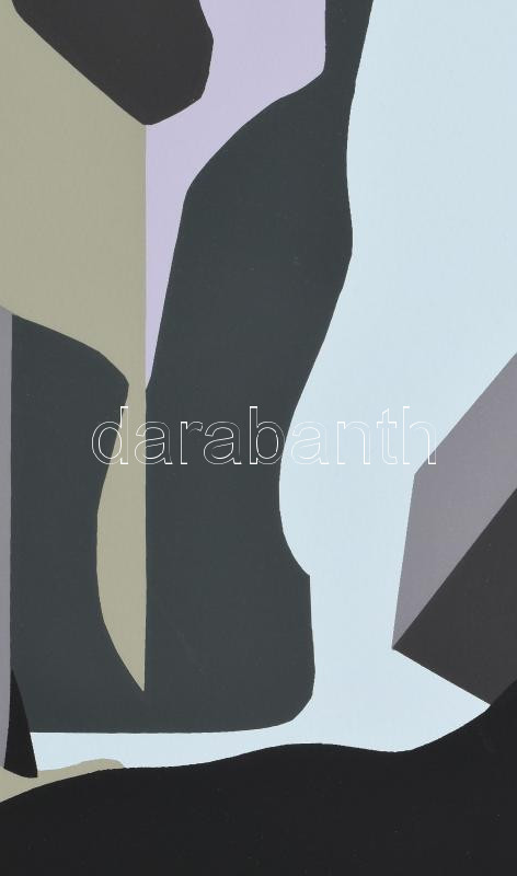 Halász Szabó Sándor (1920-1997): Színes formák. Szitanyomat, papír, jelzett, sorszámozott (2/30). 31,5×26 cm. Az olasz Művészeti Szervezet tiszteletbeli tagja volt. 1944 óta kiállító művész. Több európai városban szerepelt munkáival. 1963-től Svédországba
