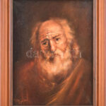 Halmai Attila (?-): Szakállas férfi portréja. Olaj, vászon. Jelzett. 52×40 cm. Dekoratív fakeretben.<a href="https://www.darabanth.com/hu/gyorsarveres/436/kategoriak~Festmenyek-es-grafikak/Festmenyek-es-grafikak~500001/Halmai-Attila-Szakallas-ferfi-