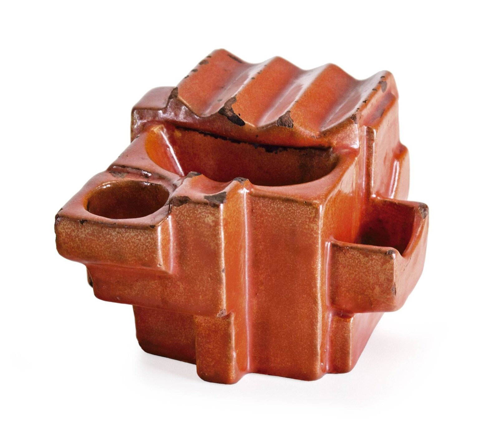 német, 1930 körül, mázas kerámia, kopott, 9,5*13,5*12 cm