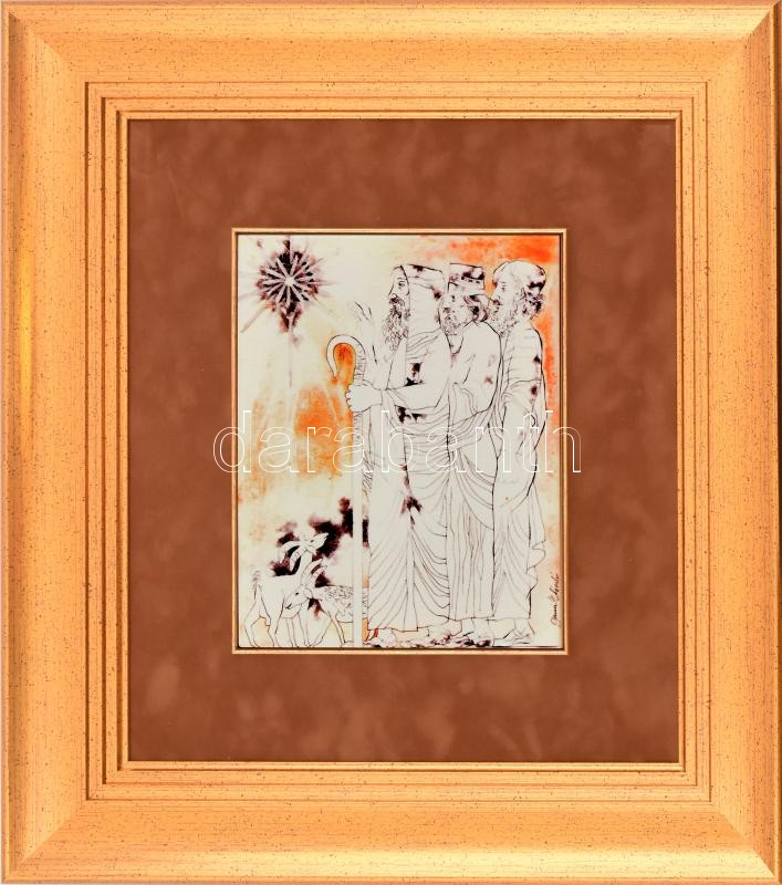 Háromkirályok, Hollóházi Jurcsák László által tervezett porcelán kép, matricás, hibátlan, dekoratív keretben, 25×20 cm<a href="https://www.darabanth.com/hu/gyorsarveres/412/kategoriak~Porcelan-keramia-uveg/Porcelan~500006/Haromkiralyok-Hollohazi-Jur