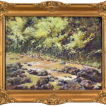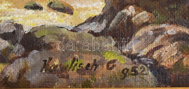 Haulisch Gusztáv (?-?): Erdei patak Olaj, vászon, kartonra kasírozva, jelzett. Dekoratív fakeretben, 18,5×24,5 cm<a href="https://www.darabanth.com/hu/gyorsarveres/431/kategoriak~Festmenyek-es-grafikak/Festmenyek-es-grafikak~5000002/Haulisch-Gusztav