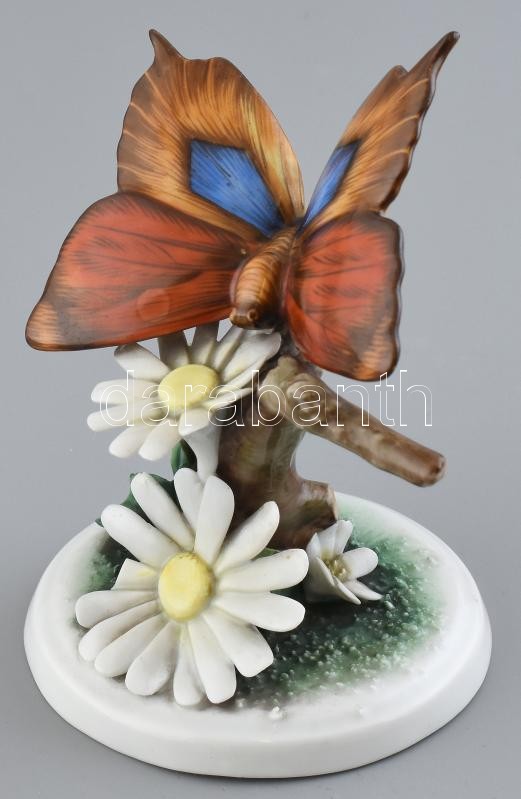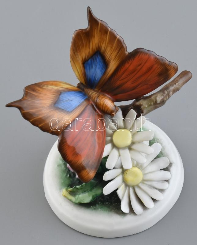 Herendi 1942 lepke a virágon, kézzel festett, jelzett, egyik szirom letörve, m: 12 cm<a href="https://www.darabanth.com/hu/gyorsarveres/413/kategoriak~Porcelan-keramia-uveg/Porcelan~500006/Herendi-1942-lepke-a-viragon-kezzel-festett-jelzett-egyik-sz