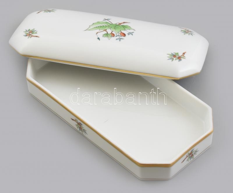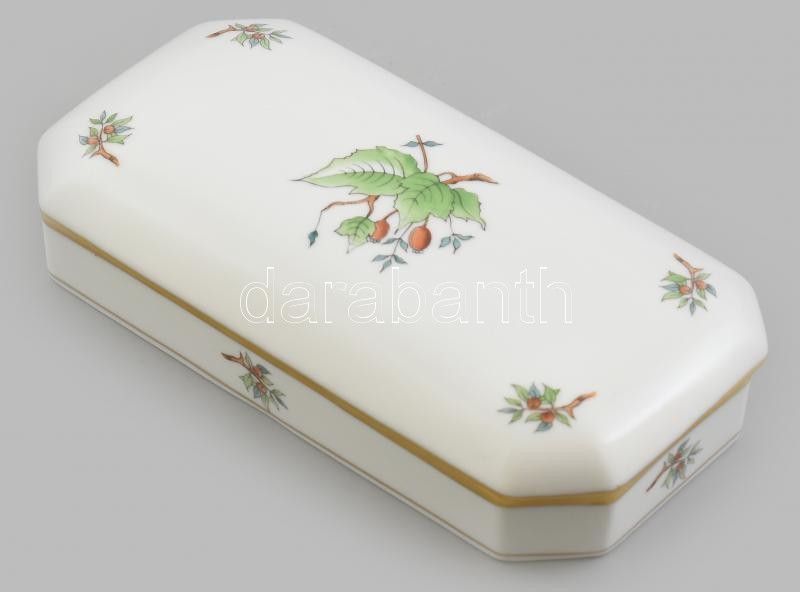 Herendi csipkebogyó mintás dobozka. Kézzel festett, jelzett, hibátlan. d: 17×9 cm<a href="https://www.darabanth.com/hu/gyorsarveres/417/kategoriak~Porcelan-keramia-uveg/Porcelan~6/Herendi-csipkebogyo-mintas-dobozka-Kezzel-festett-jelzett-hibatlan-d-