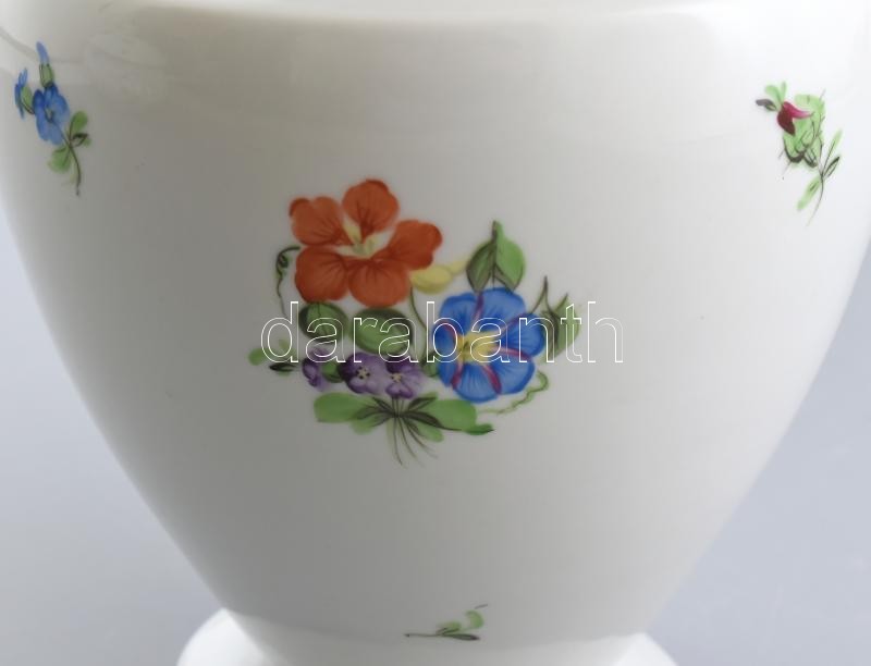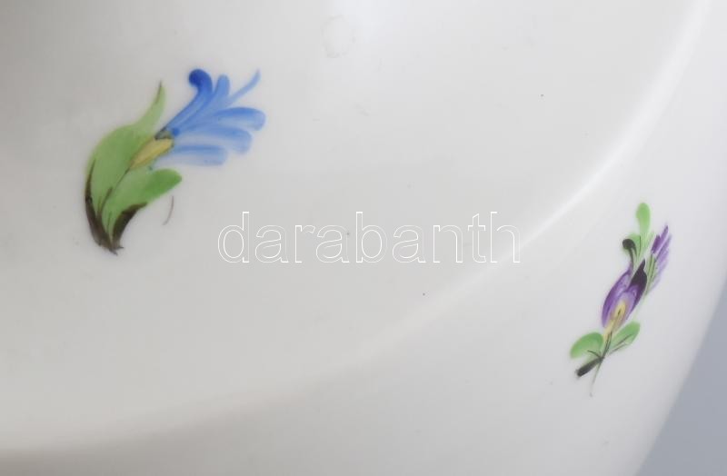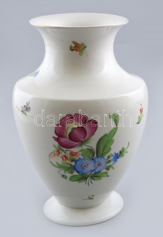 Herendi / Óherendi virágmintás váza. Kézzel festett, jelzett, kopott, gyárilag ferdén készítették. m: 23 cm<a href="https://www.darabanth.com/hu/gyorsarveres/417/kategoriak~Porcelan-keramia-uveg/Porcelan~6/Herendi-Oherendi-viragmintas-vaza-Kezzel-fe
