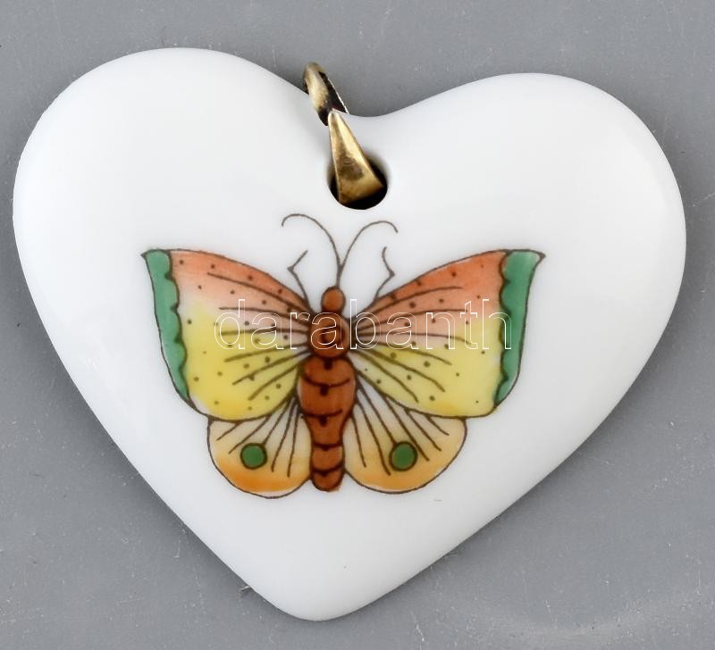 Herendi Pillangó mintás, szív medál, kézzel festett, jelzett, kopott, 3×3,5 cm<a href="https://www.darabanth.com/hu/gyorsarveres/415/kategoriak~Porcelan-keramia-uveg/Porcelan~500006/Herendi-Pillango-mintas-sziv-medal-kezzel-festett-jelzett-kopott-3C