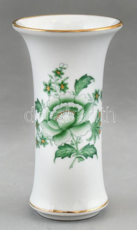 Herendi porcelán mini váza, kézzel festett, jelzett, kis kopásnyomokkal, m: 8 cm<a href="https://www.darabanth.com/hu/gyorsarveres/415/kategoriak~Porcelan-keramia-uveg/Porcelan~500006/Herendi-porcelan-mini-vaza-kezzel-festett-jelzett-kis-kopasnyomok