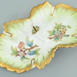 Herendi porcelán Viktória mintás leveles tálka, kézzel festett, jelzett, kis kopásnyomokkal, 14,5×8 cm<a href="https://www.darabanth.com/hu/gyorsarveres/421/kategoriak~Porcelan-keramia-uveg/Porcelan~500006/Herendi-porcelan-Viktoria-mintas-leveles-ta