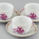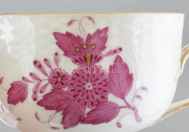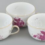 Herendi purpur Apponyi teás csésze aljjal, 3db, kézzel festett, kopásnyomokkal, jelzett.<a href="https://www.darabanth.com/hu/gyorsarveres/415/kategoriak~Porcelan-keramia-uveg/Porcelan~500006/Herendi-purpur-Apponyi-teas-csesze-aljjal-3db-kezzel-fest