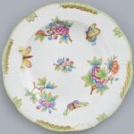 Herendi Viktória mintás 1db mélytányér, kézzel festett porcelán, jelzett, kopásnyomokkal, ragasztott.