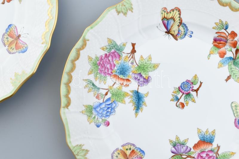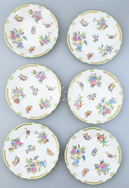 Herendi Viktória mintás 6db lapostányér, kézzel festett porcelán, jelzett, kopásnyomokkal.<a href="https://www.darabanth.com/hu/gyorsarveres/412/kategoriak~Porcelan-keramia-uveg/Porcelan~500006/Herendi-Viktoria-mintas-6db-lapostanyer-kezzel-festett-