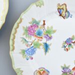 Herendi Viktória mintás 6db lapostányér, kézzel festett porcelán, jelzett, kopásnyomokkal.