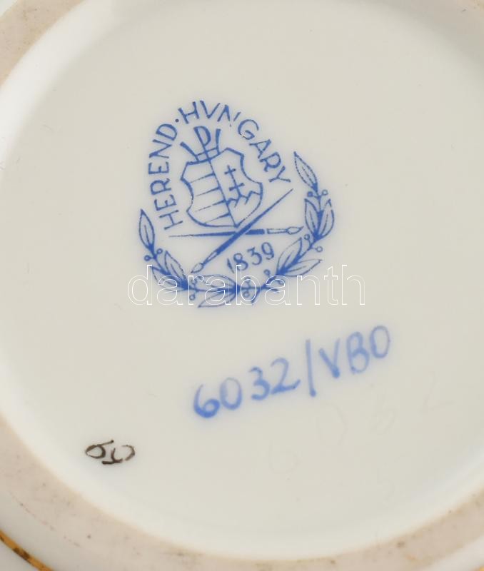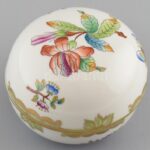 Herendi Viktória mintás bonbonier. Kézzel festett, jelzett, hibátlan. m: 7 cm, d: 9,5 cm<a href="https://www.darabanth.com/hu/gyorsarveres/415/kategoriak~Porcelan-keramia-uveg/Porcelan~500006/Herendi-Viktoria-mintas-bonbonier-Kezzel-festett-jelzett-