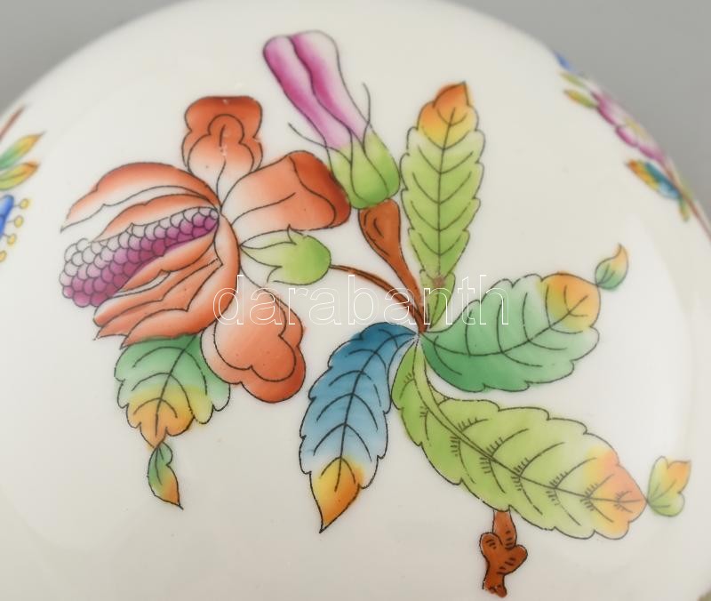 Herendi Viktória mintás bonbonier. Kézzel festett, jelzett, hibátlan. m: 7 cm, d: 9,5 cm