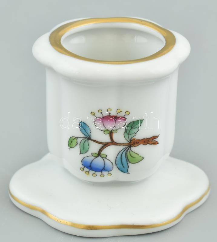 Herendi Viktória mintás porcelán gyertyatartó, kézzel festett, jelzett, kis kopásnyomokkal, m: 4,5 cm<a href="https://www.darabanth.com/hu/gyorsarveres/410/kategoriak~Porcelan-keramia-uveg/Porcelan~500006/Herendi-Viktoria-mintas-porcelan-gyertyatart