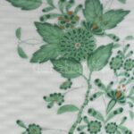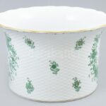Herendi zöld indiai kosár mintás, kosárnyomott óriás porcelán kaspó. Kézzel festett, jelzett, hibátlan. d: 26 cm, m: 16 cm<a href="https://www.darabanth.com/hu/gyorsarveres/417/kategoriak~Porcelan-keramia-uveg/Porcelan~6/Herendi-zold-indiai-kosar-mi