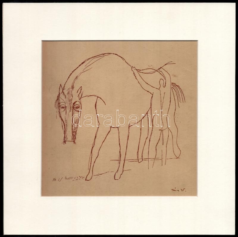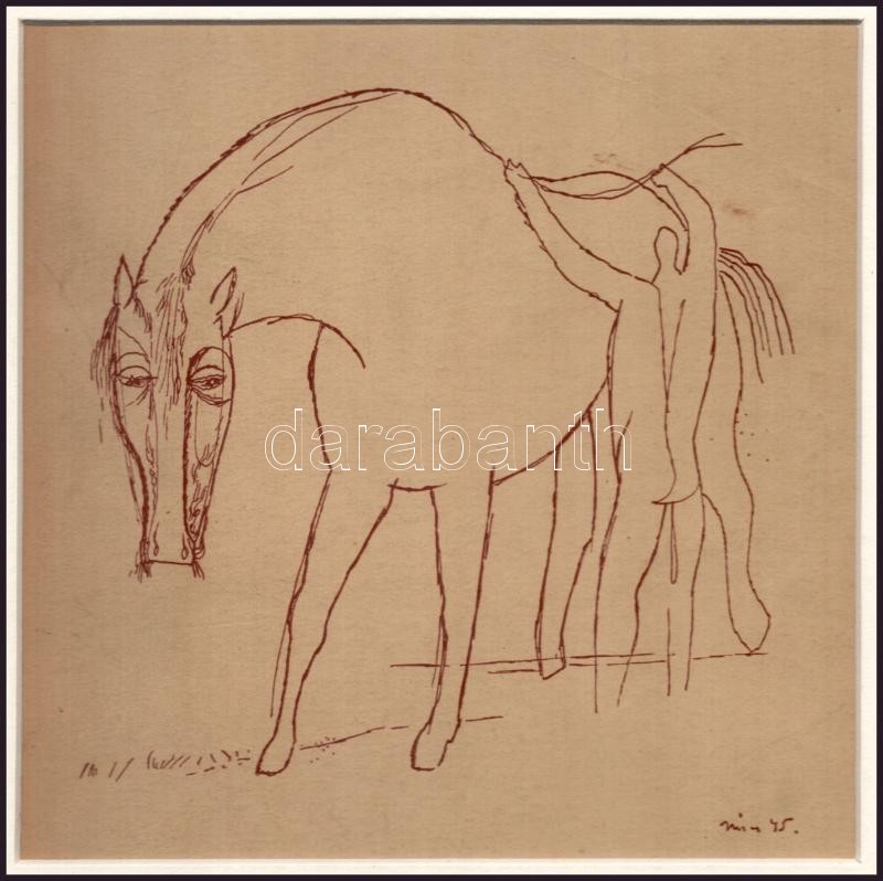 Hincz Gyula (1904-1986): Kantározás. Litográfia, paszpartuban, jelzés nélkül, felületén törésnyommal, 17×16,5 cm<a href="https://www.darabanth.com/hu/gyorsarveres/414/kategoriak~Festmenyek-es-grafikak/Festmenyek-es-grafikak~500001/Hincz-Gyula-1904-1