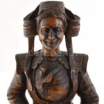 Holland faragott fa figura, kopásnyomokkal, jelzés nélkül, m:50cm<a href="https://www.darabanth.com/hu/gyorsarveres/415/kategoriak~Mutargy-papirregiseg-egyeb/Szobrok-kisplasztikak-plakettek~500009/Holland-faragott-fa-figura-kopasnyomokkal-jelzes-nel