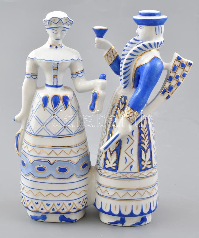 Hollóházi díszes népviseletbe öltözött pár. Kézzel festett, jelzett, minimális kopással, m: 21,5 cm<a href="https://www.darabanth.com/hu/gyorsarveres/421/kategoriak~Porcelan-keramia-uveg/Porcelan~500006/Hollohazi-diszes-nepviseletbe-oltozott-par-Kez