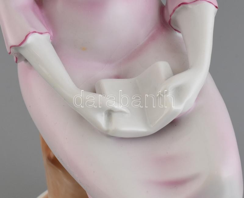 Hollóházi könyvet tartó nő, kézzel festett porcelán, kopásnyomokkal, m:35cm<a href="https://www.darabanth.com/hu/gyorsarveres/413/kategoriak~Porcelan-keramia-uveg/Porcelan~500006/Hollohazi-konyvet-tarto-no-kezzel-festett-porcelan-kopasnyomokkal-m35c