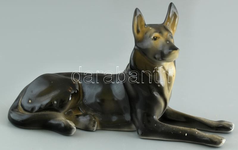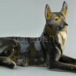 Hollóházi kutya. Kézzel festett porcelán. Kopott. jelzett etikettel. m: 12 cm