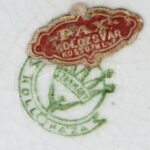 Hollóházi régi kolozsvári emlék fajansz dísztányér, felirattal. Kézzel festett, jelzett, mázrepedésekkel d: 19 cm (Etikettel ellátott: PAX Kolozsvár Kossuth L. u. 5.)<a href="https://www.darabanth.com/hu/gyorsarveres/415/kategoriak~Porcelan-keramia-