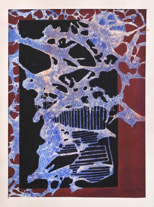 Horváth Iván (1935-): Kék szövevény (cím nélkül), 1977. Akvarell, papír, jelzett, paszpartuban, 23×17 cm. Soós Imre (1921-2013) műgyűjtő, művészeti író, a Kisgrafika folyóirat szerkesztője, a Magyar Nemzeti Galéria Baráti Köre