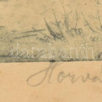 Horváth Lajos (?-?): Faluvége. Rézkarc, papír, jelzett. Üvegezett, sérült régi fakeretben, 18×24 cm<a href="https://www.darabanth.com/hu/gyorsarveres/438/kategoriak~Festmenyek-es-grafikak/Festmenyek-es-grafikak~500001/Horvath-Lajos-Faluvege-Rezkarc-