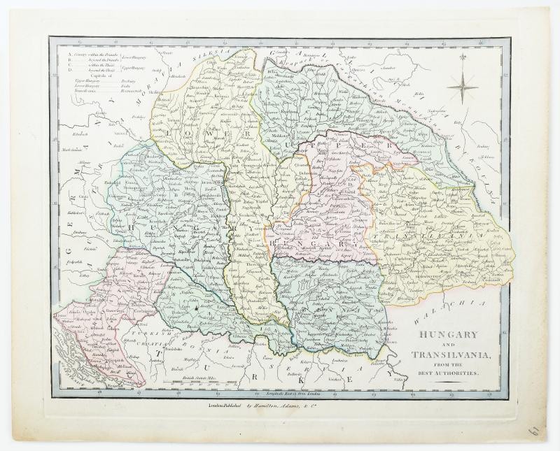 Hungary and Transilvania. Drawn from the Latest Authorities. Magyarország és Erdély színezett rézmetszetű térképe. London, 1814. Hamilton, Adams & Co. 287×227 mm / Colored engraving.