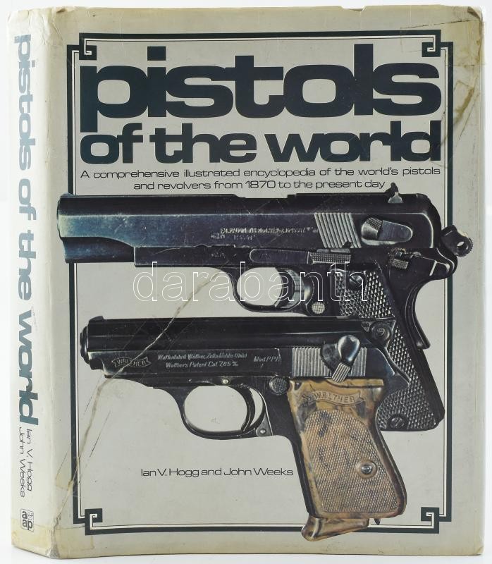 Ian V. Hogg – John Weeks: Pistols of the world. London,1978, Arms and Amour Press. Angol nyelven. Fekete-fehér fotókkal illusztrált. Kiadói egészvászon-kötés, kiadói szakadt, javított papír védőborítóban, az elülső szennylapon tollas jegyzettel.<a h