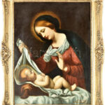 id. Czene Béla (1886-1944 körül), Carlo Dolci (1616-1686) után: Madonna a kisdeddel. Olaj, vászon. Jelezve jobbra lent. Dekoratív fakeretben. 81×60,5 cm<a href="https://www.darabanth.com/hu/gyorsarveres/433/kategoriak~Festmenyek-es-grafikak/Festmeny
