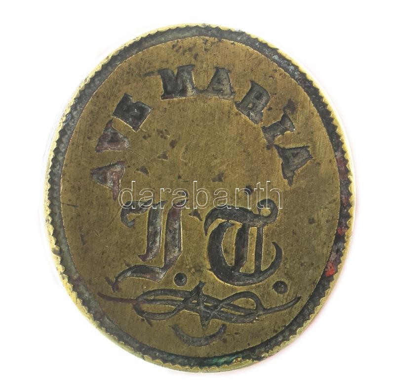ID monogramos pecsétnyomó Ave maria felirattal. Bronz. XVIII. sz. 5 cm / Antique bronze seal maker