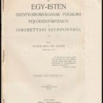 Ilosvai (Kollár) Vilmos: Az EGY-ISTEN szentháromságának fogalma fejlődéstörténeti és ismerettani szempontból. Bp., 1905., Várnai F.,55+1 p. Kiadói papírkötés, kissé sérült gerinccel, szakadt, foltos borítóval.