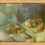 Imreh Zsigmond (1900-1965): Csendélet üvegekkel és gyümölcsökkel. Pasztell, papír, jelzett. Üvegezett, sérült fakeretben, 50×70 cm<a href="https://www.darabanth.com/hu/gyorsarveres/435/kategoriak~Festmenyek-es-grafikak/Festmenyek-es-grafikak~500001/