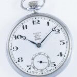 Inyar zsebóra, fém tokkal, nem működik, kopásnyomokkal, hibátlan számlappal. d: 50 mm<a href="https://www.darabanth.com/hu/gyorsarveres/415/kategoriak~Mutargy-papirregiseg-egyeb/Orak~500010/Inyar-zsebora-fem-tokkal-nem-mukodik-kopasnyomokkal-hibatla