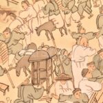 Ismeretlen jelzéssel, kínai alkotó XX. közepi munkája: Forgatag. Akvarell, tus, papír. Hátoldalán apró foltokkal. 93×60 cm