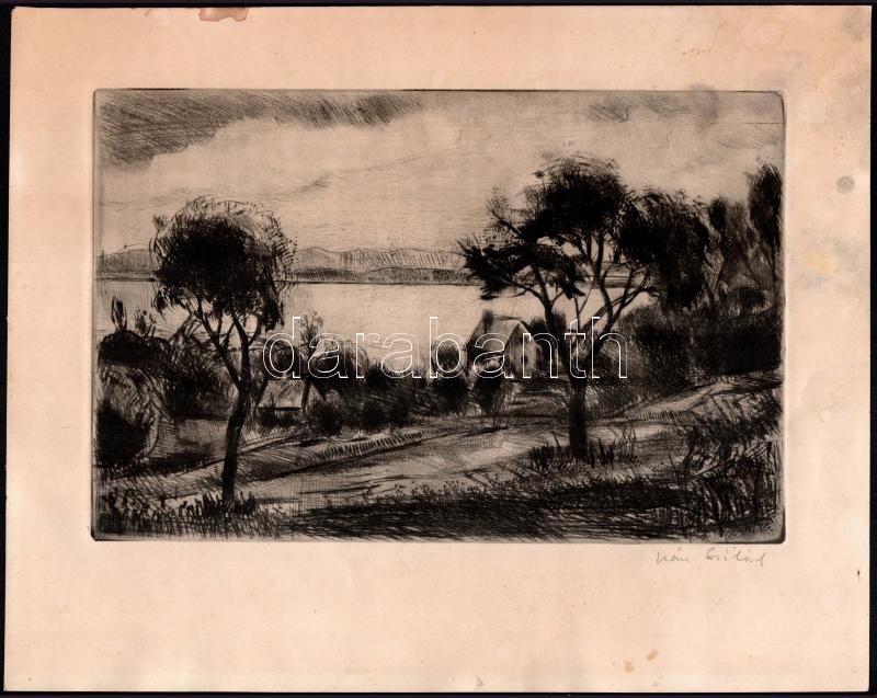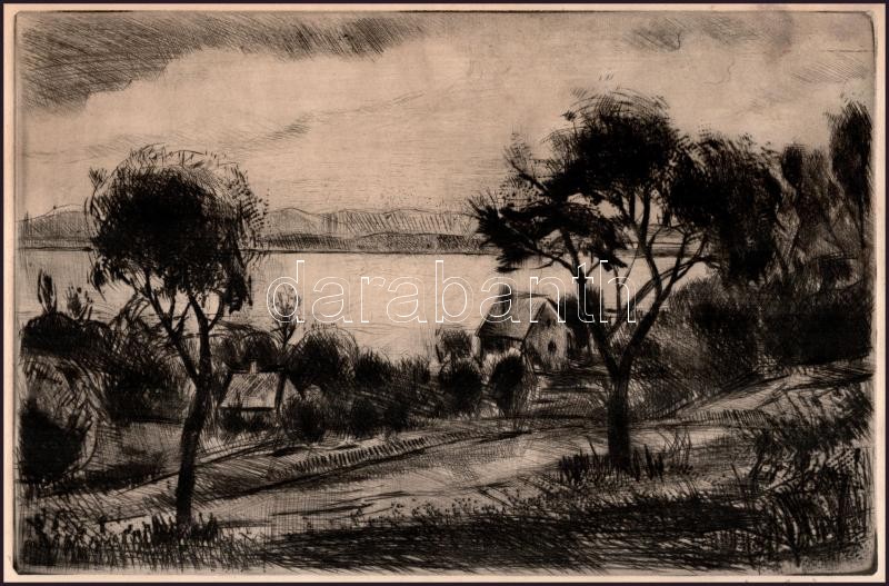 Iván Szilárd (1912-1988): Vízparti táj. Rézkarc, papír. Jelzett, a lap kissé foltos, 29,5×19,5 cm<a href="https://www.darabanth.com/hu/gyorsarveres/414/kategoriak~Festmenyek-es-grafikak/Festmenyek-es-grafikak~500001/Ivan-Szilard-1912-1988-Vizparti-t