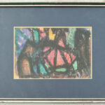 Iványi Katalin (1924-2013): Háztetők. Olajpasztell, papír, jelzett. Üvegezett fakeretben, 9×14 cm