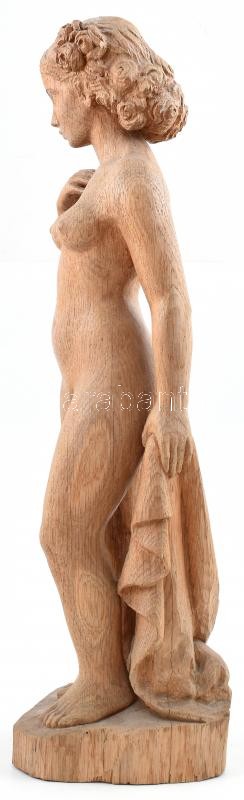 Jakab Gyula (1910-1991): Női akt, fa szobor, repedéssel, m: 50 cm<a href="https://www.darabanth.com/hu/gyorsarveres/421/kategoriak~Mutargy-papirregiseg-egyeb/Szobrok-kisplasztikak-plakettek~500009/Jakab-Gyula-1910-1991-Noi-akt-fa-szobor-repedessel-m