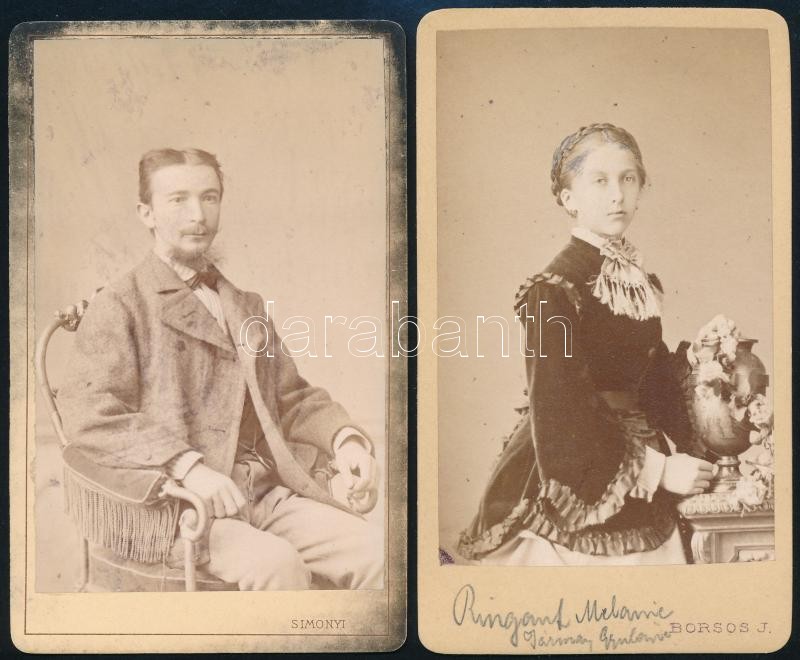 Jármay Gyula? (1846-1915) gyógyszerész és felesége Ringauf Melanie. Két vizitkártya fotó