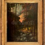 Jászay József (1869-?): Tátrai hegyek, 1928. Olaj, vászon, kartonon. Jelezve balra lent. Dekoratív, sérült fakeretben. 47×38 cm / József Jászay (1869-?): Tátry, 1928. Oil on canvas,.moubnted on cardboard. Signed lower left. In damaged