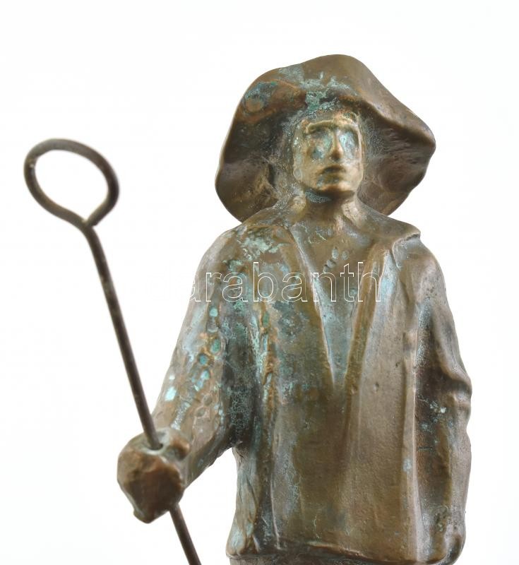 Jelzés nélkül: Halász. Bronz szobor, fa talapzaton, m: 23 cm