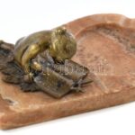 Jelzés nélkül: Kottát olvasó kislány. Öntött, patinázott bronz, márvány hamutál talapzattal, kopott, m:10 cm