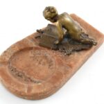 Jelzés nélkül: Kottát olvasó kislány. Öntött, patinázott bronz, márvány hamutál talapzattal, kopott, m:10 cm