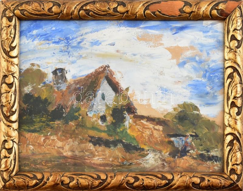 Jelzés nélkül: Tanya. Olaj, karton. Dekoratív, üvegezett, kissé sérült fa keretben. 22×30 cm<a href="https://www.darabanth.com/hu/gyorsarveres/411/kategoriak~Festmenyek-es-grafikak/Festmenyek-es-grafikak-jelzessel-jelzes-nelkul~505002/Jelzes-nelkul-