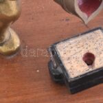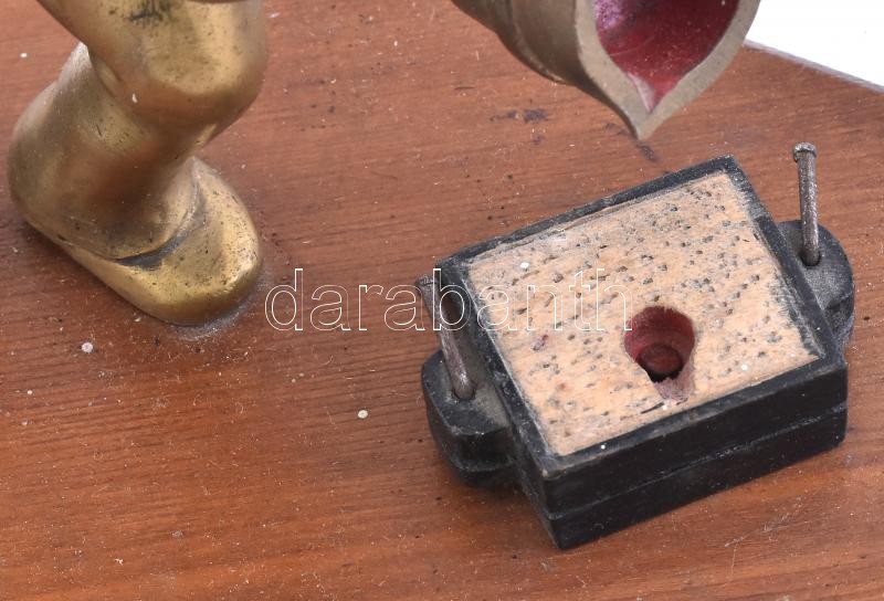 Jelzés nélkül: Vasöntő, bronz, fatalapzaton, m: 20 cm