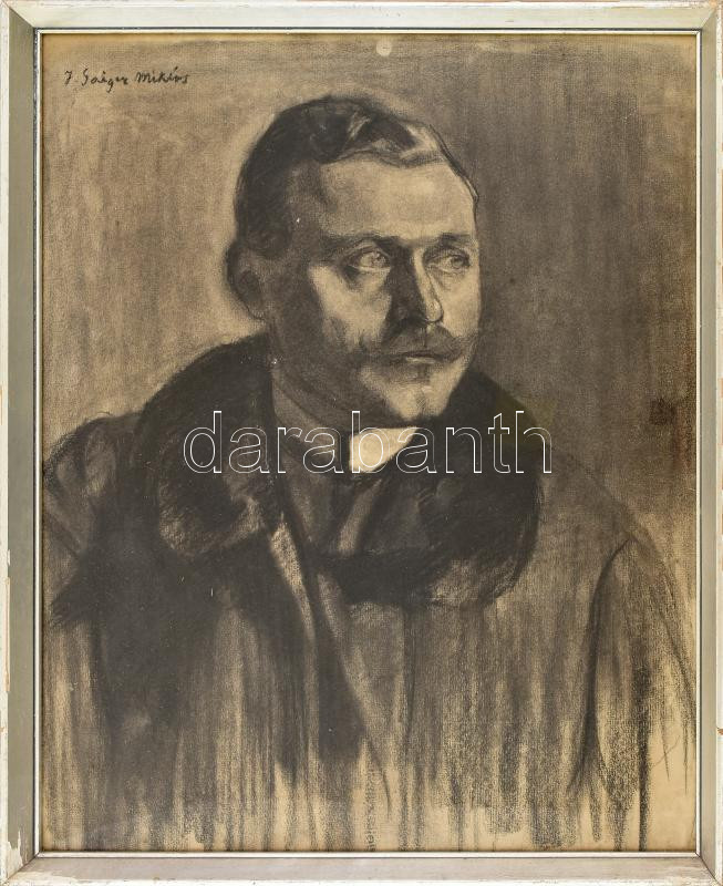 Jobbágyi Gaiger Miklós (1892-1959): Portré. Szén, papír, jelzett. Üvegezett, sérült fakeretben. 54×44 cm<a href="https://www.darabanth.com/hu/gyorsarveres/430/kategoriak~Festmenyek-es-grafikak/Festmenyek-es-grafikak~500003/Jobbagyi-Gaiger-Miklos-189