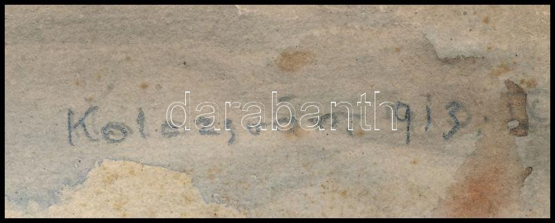 Johan Hugó (1891-1956): Kolozsvár környéki táj (Erdély), 1913. Akvarell, papír, jelezve balra lent: Johan Hugó, jobbra fent. Kolozsvár 913. Proveniencia: Johan Hugó hagyatéka. Sérült. 35×25,5 cm. / watercolour on paper, signed.