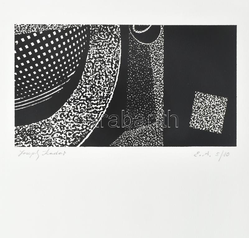 Joseph Kádár (1936-2019): Dualista kompozíció. Szitanyomat, papír, jelzett, művészpéldány E.A. 5/10 számozással. Hátoldalán a művész pecsétjével. 13,5×27 cm<a href="https://www.darabanth.com/hu/gyorsarveres/437/kategoriak~Festmenyek-es-grafikak/Fest